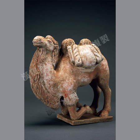 Colored goods-carrying kneeling camel of the North Zhou Dynasty (557-581) 30cm high and 30cm long is now collected in Shaanxi History Museum. We replicated it in 2013 and the repli